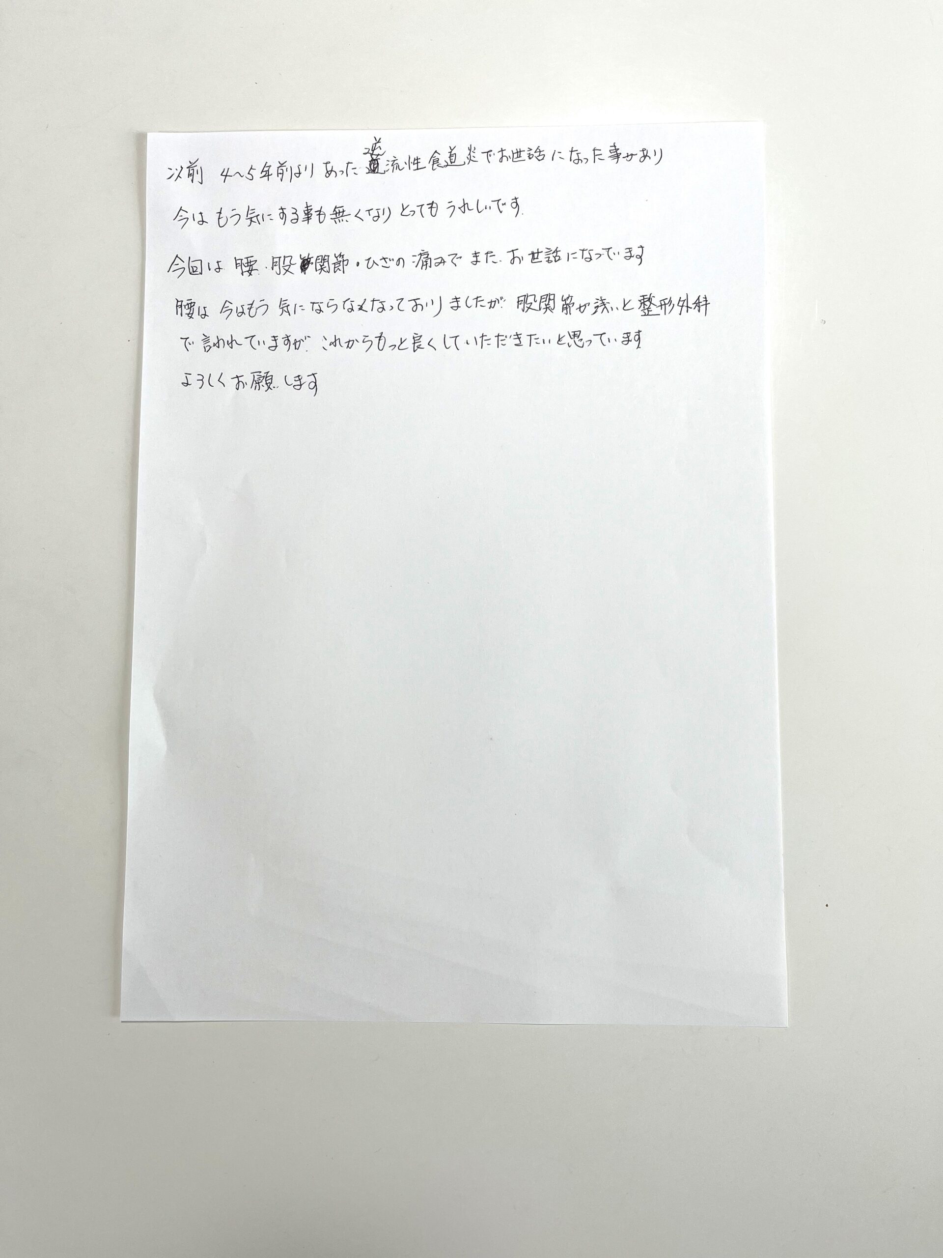 そして、腰や膝も痛くなっていたのでこちらへ通うようになりました。